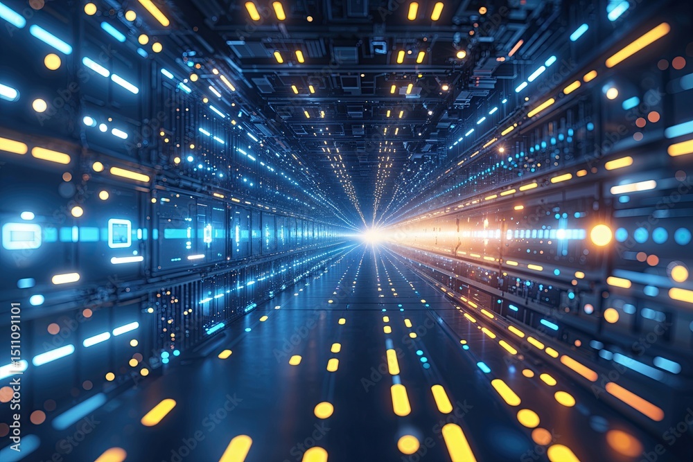 Wall mural abstract blue technology background with light effect in space - Wall murals Wall mural abstract blue technology background with light effect in space - Wall murals