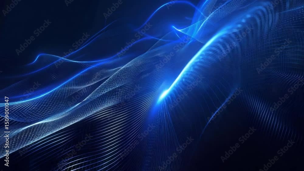 Abstract blue wave background design with flowing lines and glowing effects for digital art and techWall mural