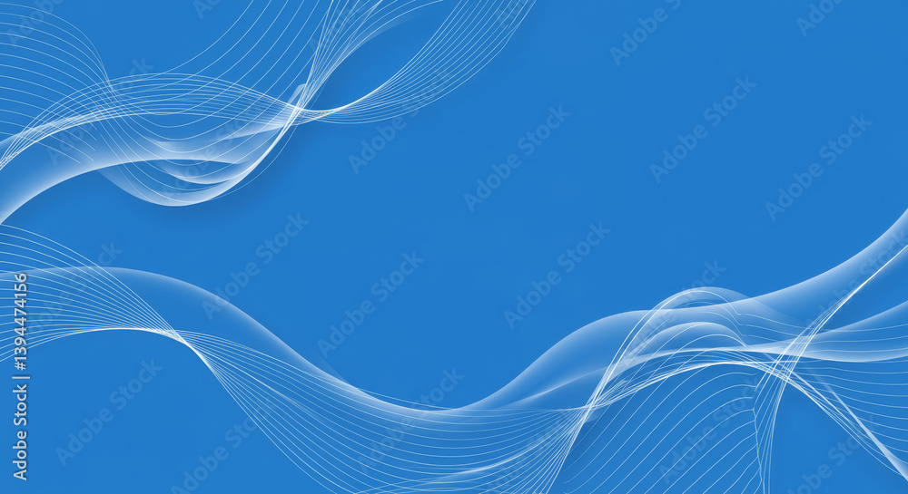 Wall mural abstract blue wave background - elegant abstract background featuring flowing white waves on a solid