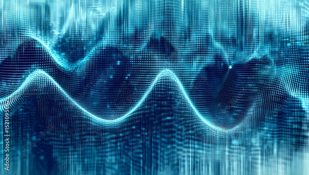 The watermark will not be included on Wall mural.: Abstract blue wave background with dots and lines, a high-tech concept of big data or digital techno