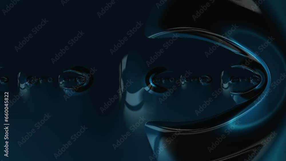 The watermark will not be included on Wall mural.: Abstract blue wave fractal pattern flowing on black - glossy hi-tech modern loop able animation