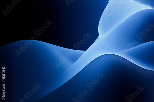 The watermark will not be included on Wall mural.: Abstract blue waves flow smoothly on a dark backdrop, creating a serene and modern graphic design - t