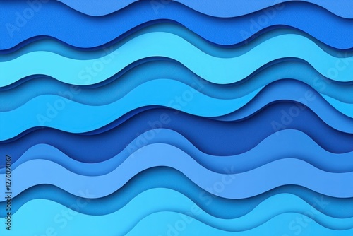 Wall mural : Abstract blue waves layered background in varying shades