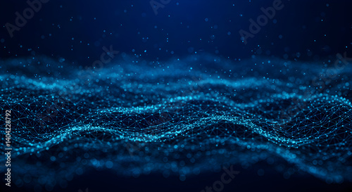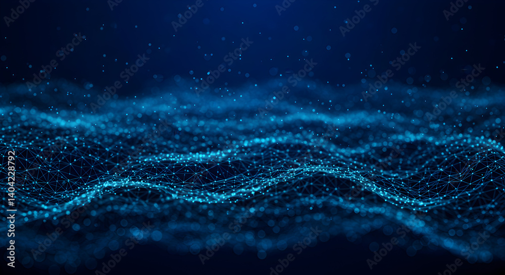 Wall mural abstract blue wavy background with particle network data technology connection and dynamic visual st - Wall murals Wall mural abstract blue wavy background with particle network data technology connection and dynamic visual st - Wall murals
