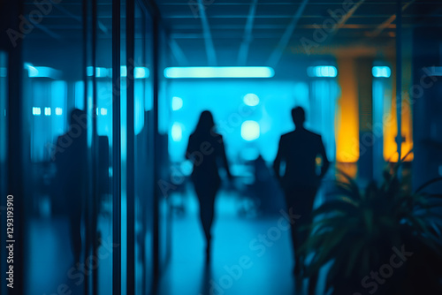 Wall mural abstract blur image of business people walking at modern hallway with bokeh for background usage - Wall murals Wall mural abstract blur image of business people walking at modern hallway with bokeh for background usage - Wall murals