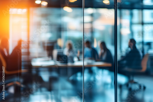 Wall mural abstract blur image of business people walking at modern hallway with bokeh for background usage - Wall murals Wall mural abstract blur image of business people walking at modern hallway with bokeh for background usage - Wall murals