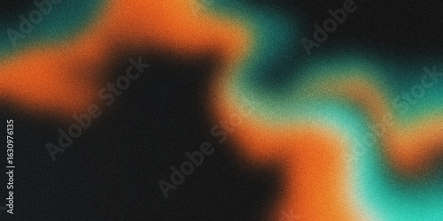 Wall mural abstract blurred background with noise texture. blurred orange green wave on black background. gradi