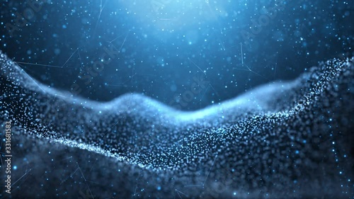 Wall mural abstract blurry and wavy dots random moving with shiny light copy space animation background.