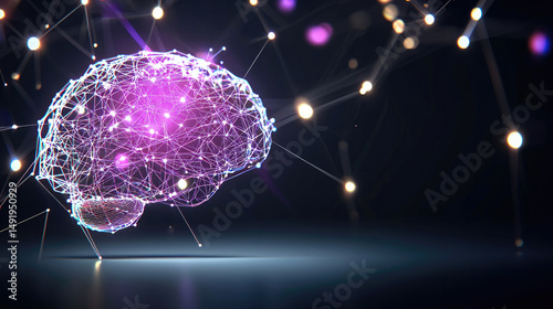 Wall mural abstract brain digital network neural connection glowing purple futuristic technology science