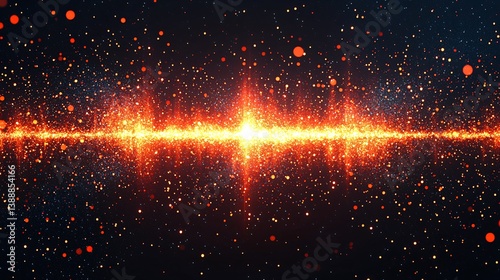 Wall mural : Abstract bright horizontal pulse amidst dispersed sparkling particles in a dark space