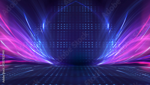 Wall mural abstract bright neon background scene with rays, spotlights, multi-colored background.