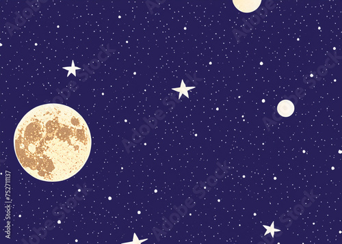 Wall mural abstract cartoon style of blue night sky with stars and moon created with generative ai technology.  - Wall murals Wall mural abstract cartoon style of blue night sky with stars and moon created with generative ai technology. - Wall murals