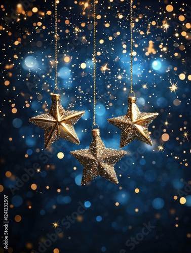 Wall mural abstract christmas background with falling snowflakes and sparkling stars on blue background with em - Wall murals Wall mural abstract christmas background with falling snowflakes and sparkling stars on blue background with em - Wall murals