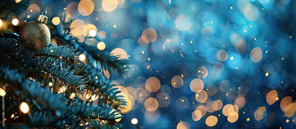 Wall mural abstract christmas design featuring a blue background with bokeh effect suitable for use as a copy s