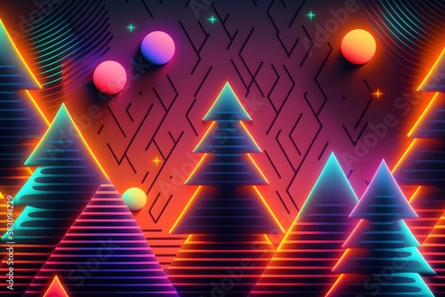 Wall mural abstract christmas neon colorful background in style of retro synthwave, ai generated