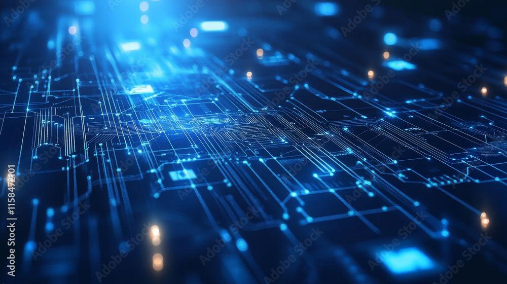 Wall mural abstract circle digital circuit concept light circle network connection blue digital background futu - Wall murals Wall mural abstract circle digital circuit concept light circle network connection blue digital background futu - Wall murals