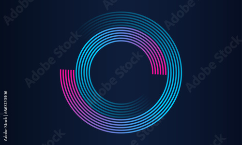 Wall mural : Abstract circle line pattern spin blue pink light isolated on black background in the concept of mus
