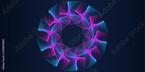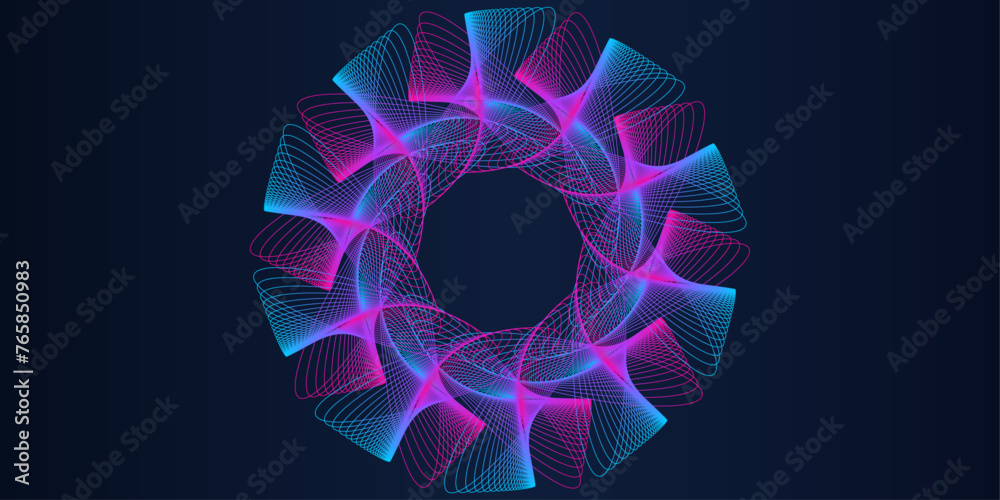Wall mural : Abstract circle line pattern spin blue pink light isolated on black background in the concept of mus