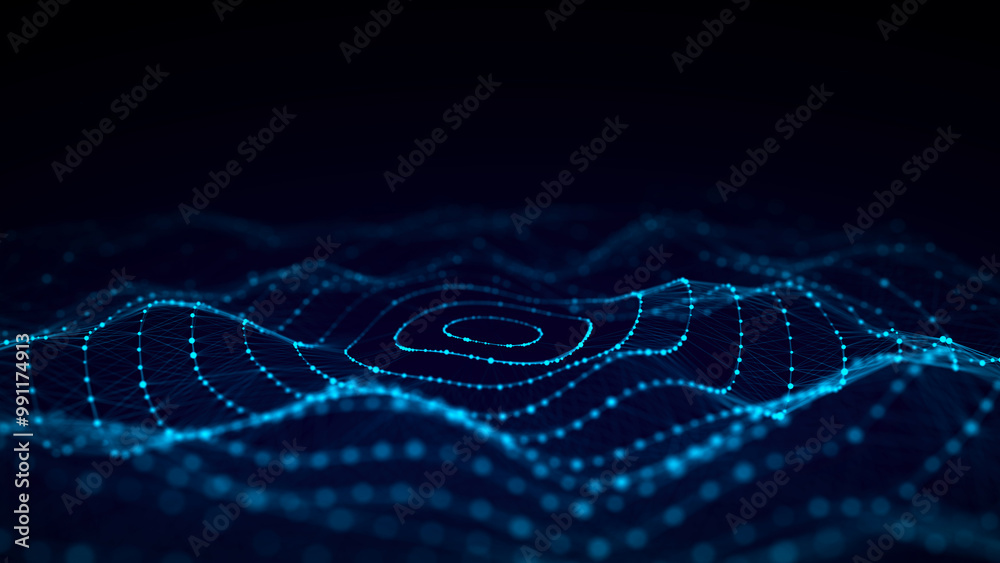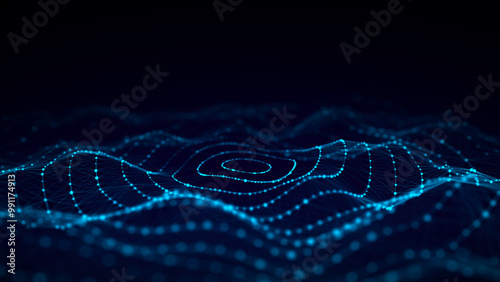 Abstract circle wave with moving dots - flow of particles - cyber technology illustration - 3d renderinWall mural