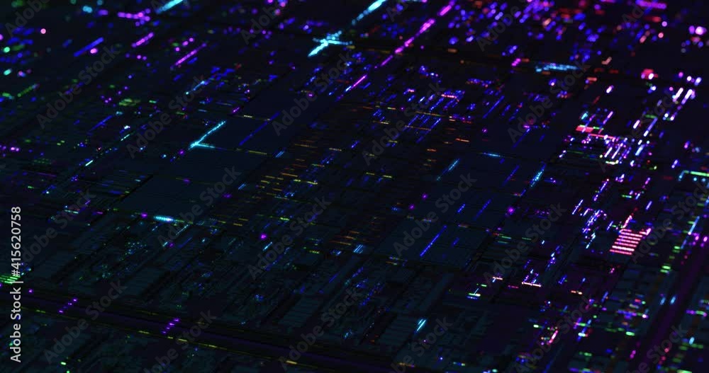 Wall mural abstract circuit background with neon lines and dots connecting together, dof. futuristic high techn - Wall murals Wall mural abstract circuit background with neon lines and dots connecting together, dof. futuristic high techn - Wall murals