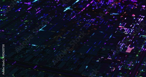 The watermark will not be included on Wall mural.: Abstract circuit background with neon lines and dots connecting together, dof - futuristic high techn