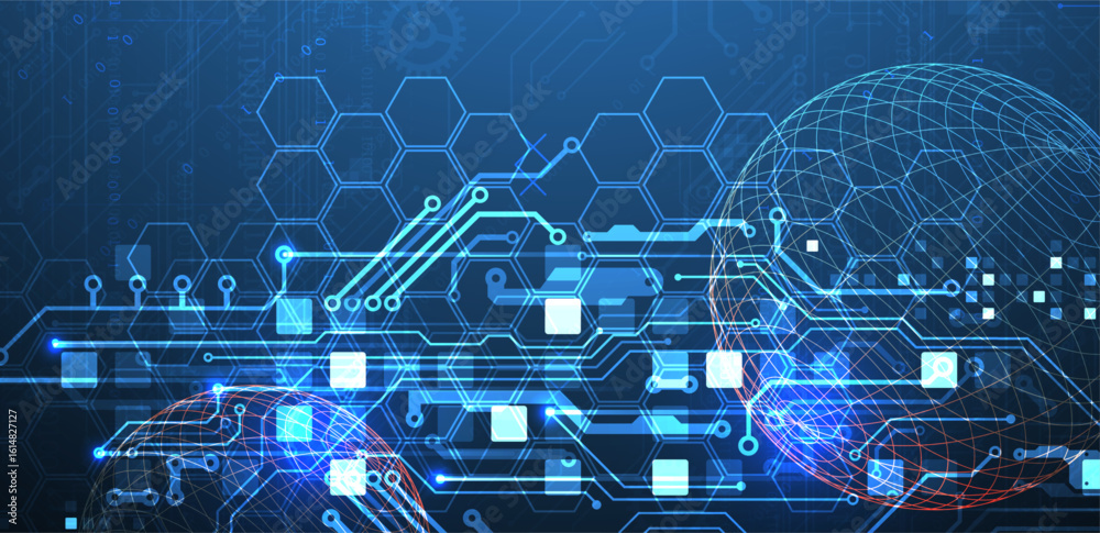 The watermark will not be included on Wall mural.: Abstract circuit board background with sphere - hi-tech digital technology concept - vector -