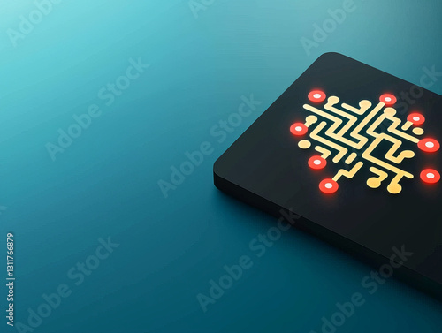 Wall mural : Abstract circuit board design with glowing elements on teal background