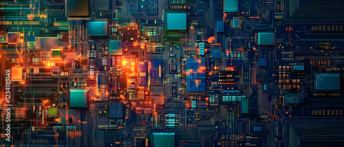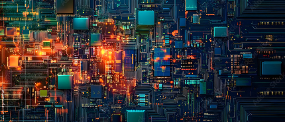 Wall mural abstract circuit board futuristic technology processing background - Wall murals Wall mural abstract circuit board futuristic technology processing background - Wall murals