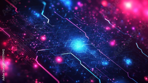 Wall mural abstract circuit board glowing in vibrant colors. possible stock photo use background image for tech