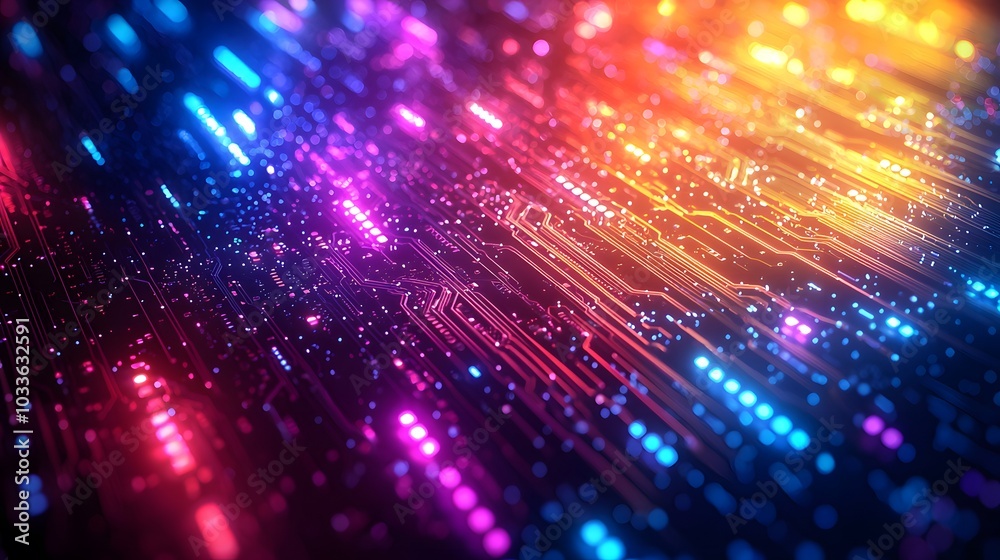 Wall mural : Abstract circuit board with glowing lines - illustration abstract art background for presentations an