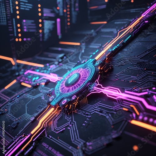 The watermark will not be included on Wall mural.: Abstract circuit cyberspace design created with generative ai technology