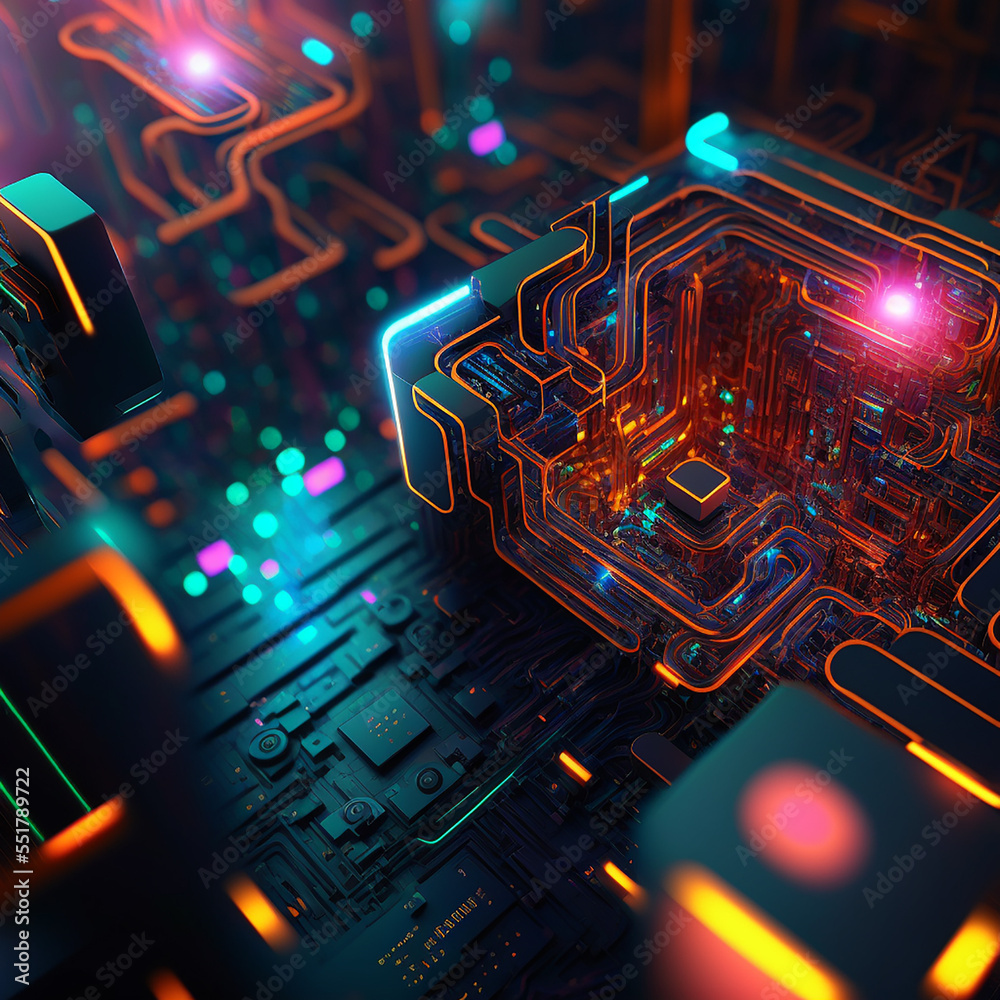 The watermark will not be included on Wall mural.: Abstract circuit cyberspace design created with generative ai technology