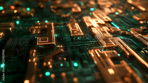 The watermark will not be included on Wall mural.: Abstract circuit lines in copper and emerald, tech-inspired and intricate