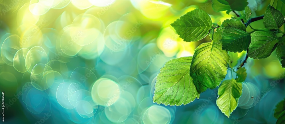 Abstract circular bokeh with blurred leaves creates a green leaf background ideal for design images Wall mural