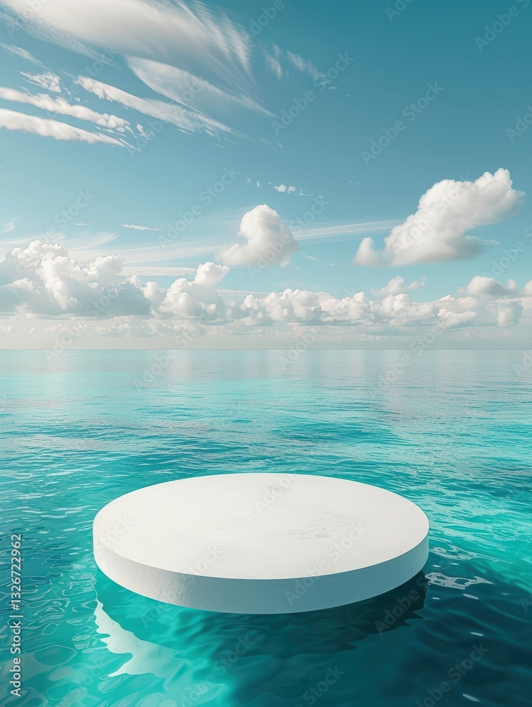 The watermark will not be included on Wall mural.: Abstract circular platform on calm turquoise waters