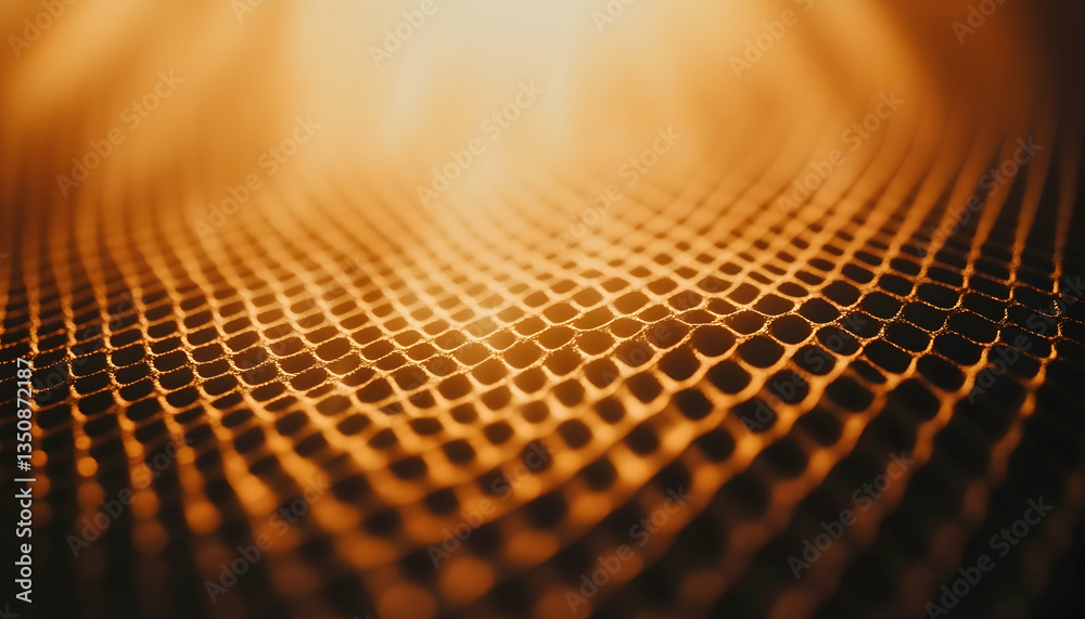 The watermark will not be included on Wall mural.: Abstract close-up of a textured orange grid pattern, illuminated with warm light, creating a captiva