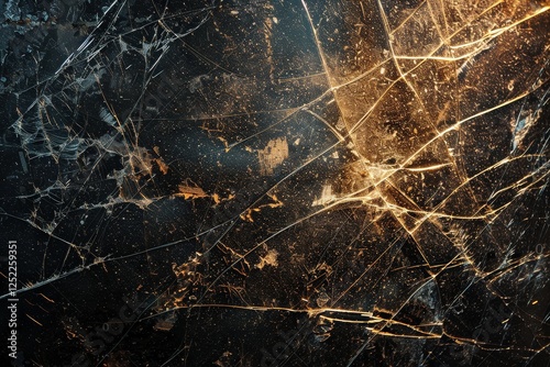 Wall mural : Abstract close-up of shattered glass with light reflections and intricate patterns showcasing textur