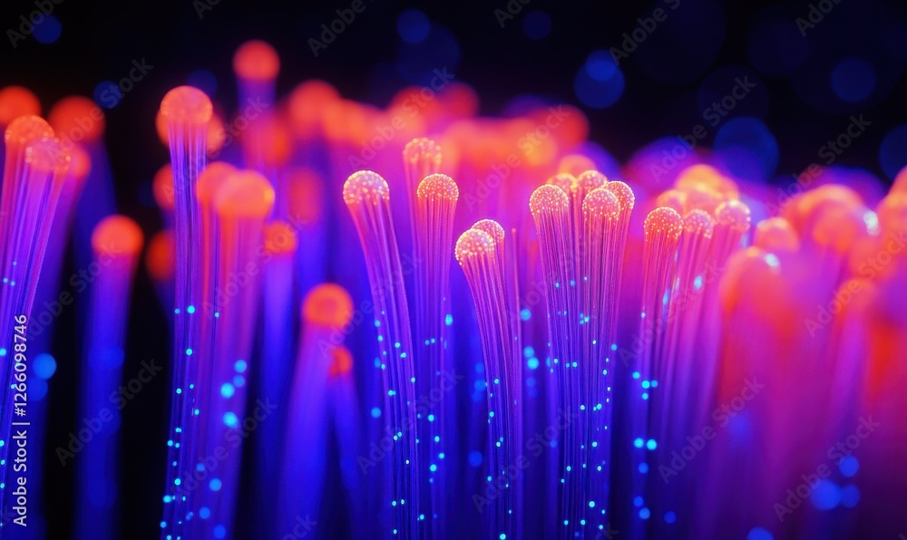 Wall mural : Abstract close-up of vibrant particles glowing in a dark background, creating a cosmic effect -