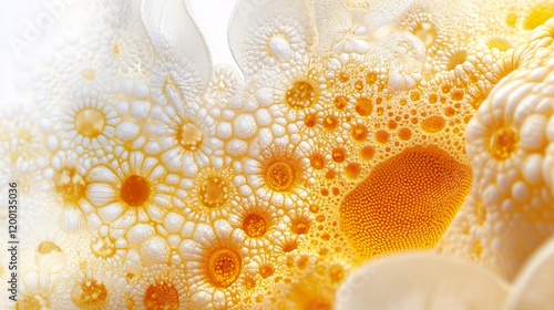 Wall mural : Abstract close-up of vibrant yellow and white foam patterns with intricate details and textures -