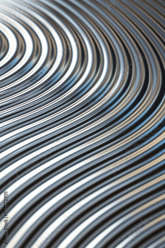 Wall mural abstract closeup of metallic curved lines creating a wavy pattern with reflections of light and shad
