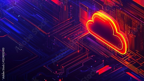 Wall mural : Abstract cloud computing network neon cloud icon on circuit board digital data technology concept