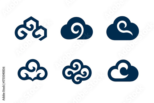 Wall mural : Abstract cloud logo variations - clouds - set logo of clouds: abstract swirling cloud - harmonious logo
