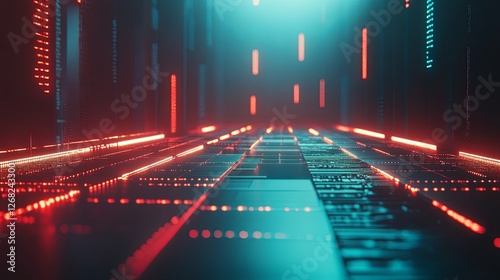 Wall mural : Abstract coding concept with glowing lines and symbols, symbolizing innovation and digital transform