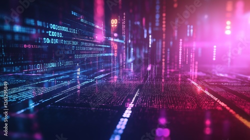 The watermark will not be included on Wall mural.: Abstract coding concept with glowing lines and symbols, symbolizing innovation and digital transform