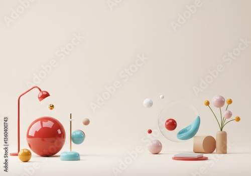 Wall mural abstract colorful 3d render with floating geometric shapes and pastel colors - Wall murals Wall mural abstract colorful 3d render with floating geometric shapes and pastel colors - Wall murals
