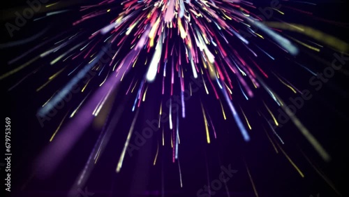 Wall mural abstract colorful animated firework particle burst, christmas new years eve animation, 4k uhd loop