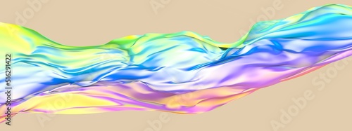 The watermark will not be included on Wall mural.: Abstract colorful background with iridescent liquid - flight of fabric - 3d render
