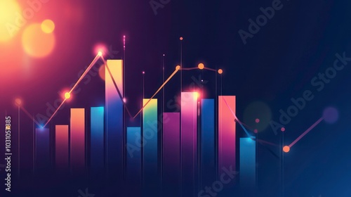 Wall mural : Abstract colorful bar graph with glowing lines representing growth on a dark blue background -