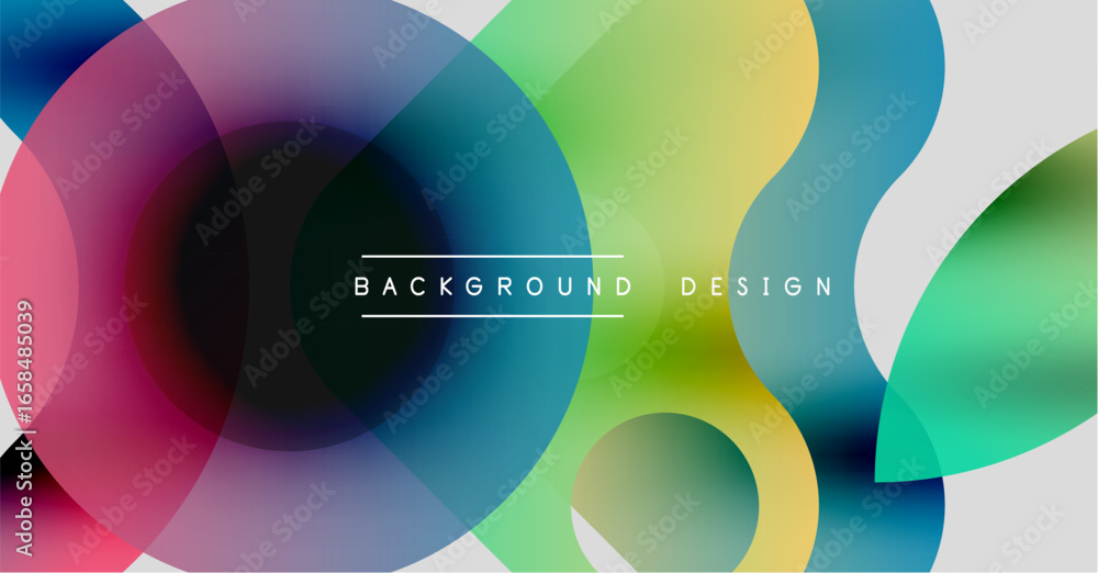 The watermark will not be included on Wall mural.: Abstract colorful circles overlap creating vibrant background - modern design elements present smooth