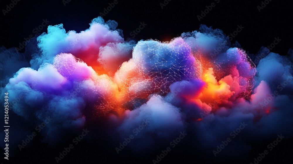 The watermark will not be included on Wall mural.: Abstract colorful cloud network digital art wired connection futuristic technology background